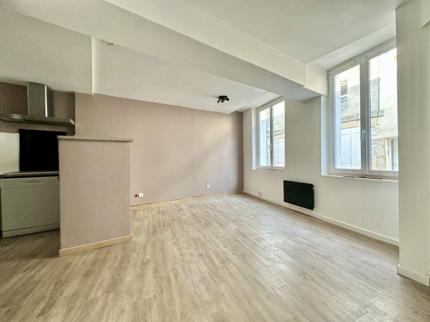 Studio en rez-de-chaussée, au sein d'un immeuble de 4 lots. Il comprend une pièce de vie avec cuisine aménagée et équipée ains qu'une salle d'eau avec WC.