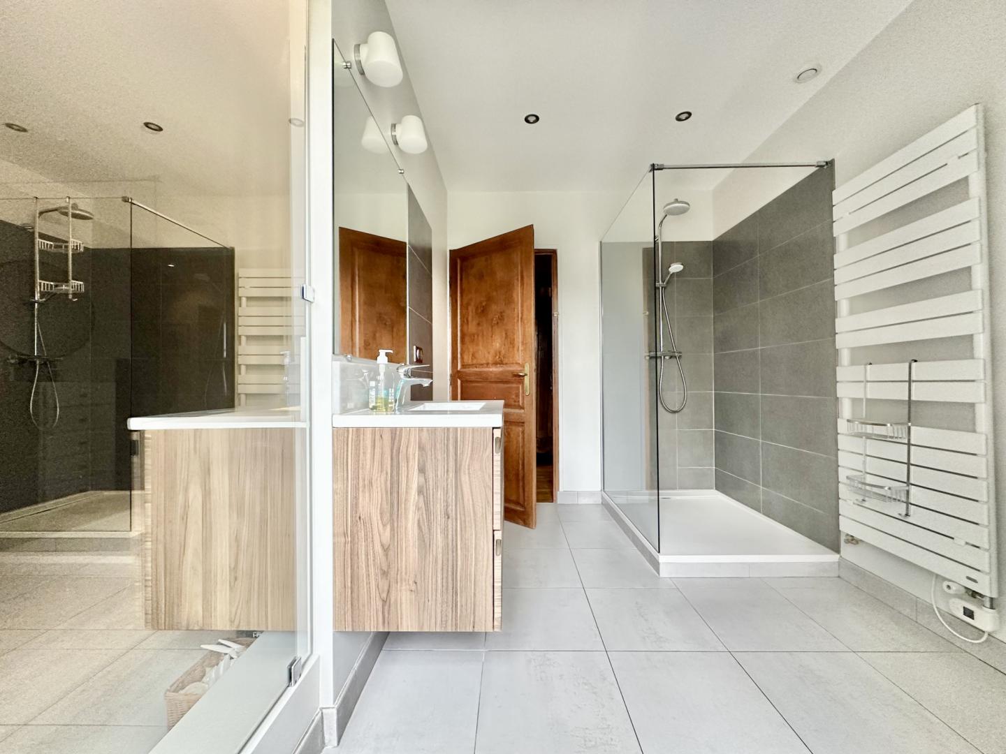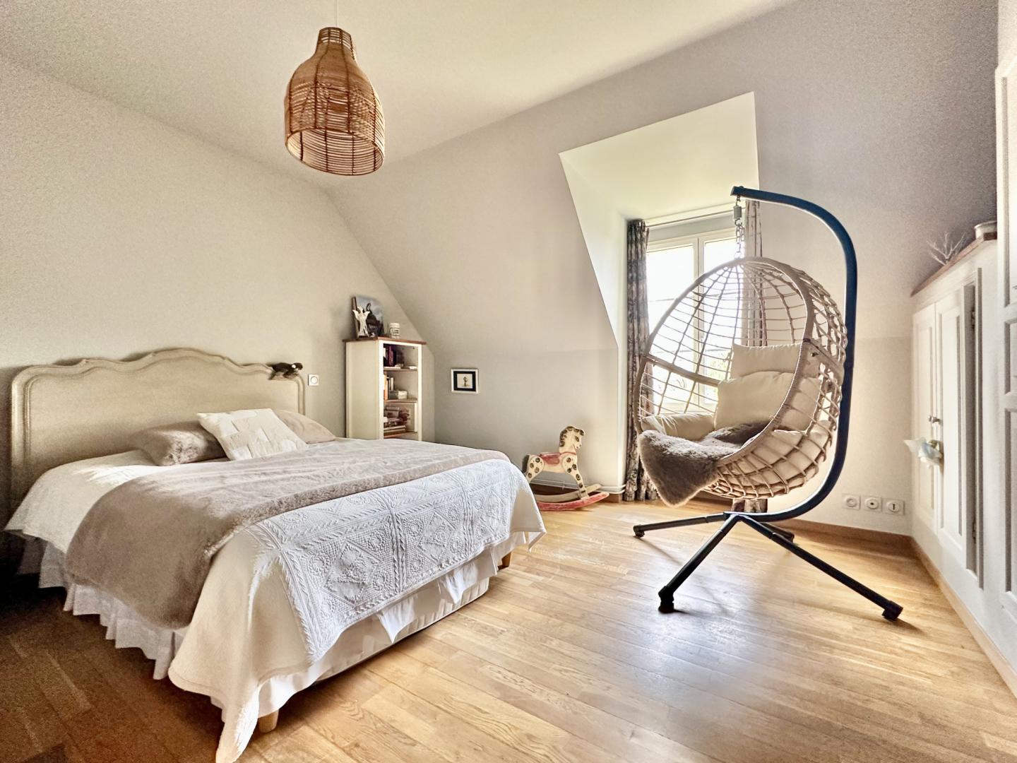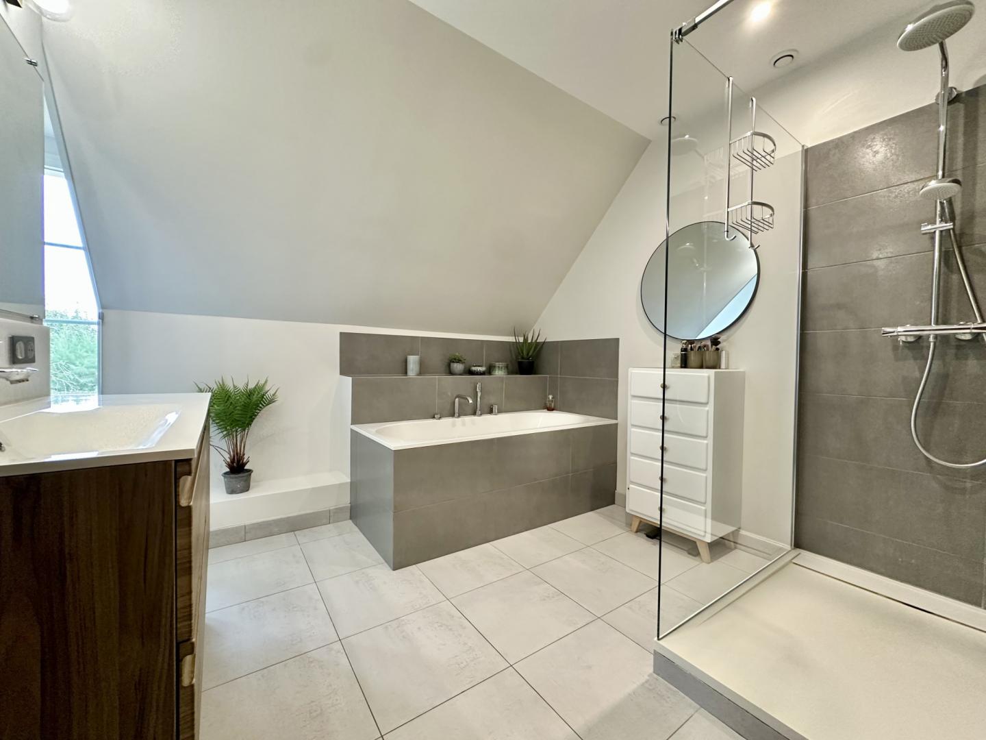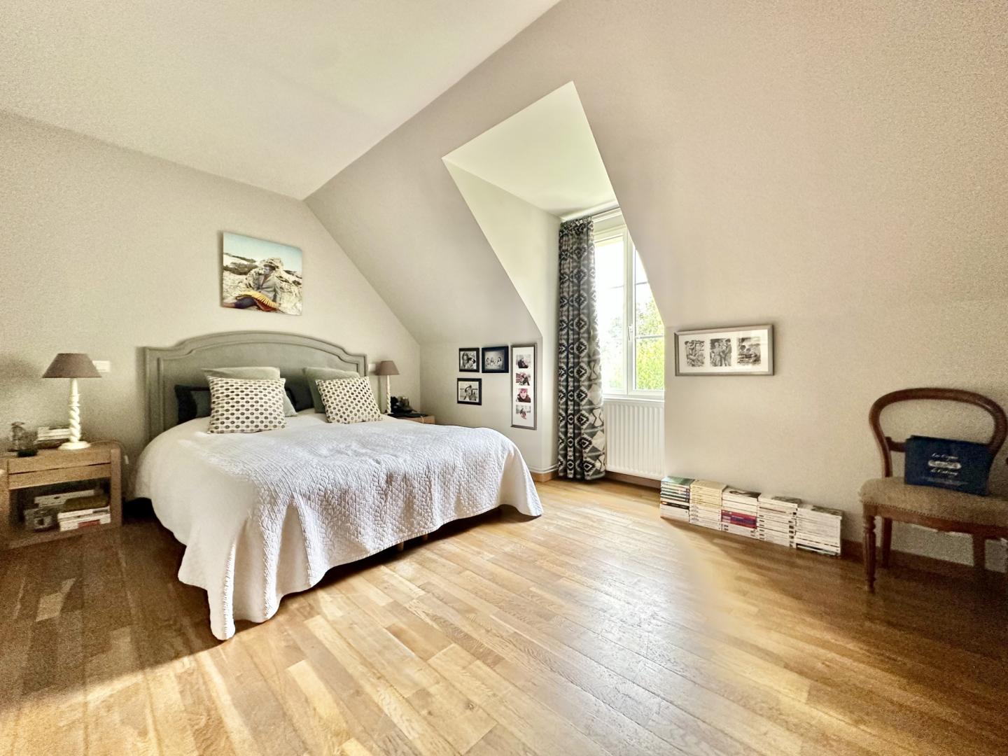 Chamant, très belle construction lumineuse et aux volumes généreux offre en rez-de-chaussée : un hall d’entrée avec vestiaire et toilettes, un vaste séjour/salon avec cheminée, une grande cuisine dinatoire. A l’étage : un palier dessert quatre chambres, une salle de bains avec douche, une salle d’eau et toilettes. Un sous-sol complet propose : une buanderie/laverie, un bureau/atelier, une chaufferie et deux immenses caves. Bûcher, carport deux véhicules, belle dépendance. Jardin paysagé clos de vieux murs. Magnifique propriété à visiter rapidement !